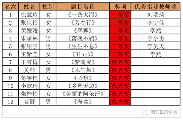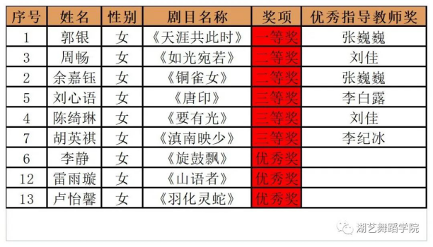 湖北艺术职业学院艺术专业(舞蹈表演)技能大赛系列活动之一第四届“新苗杯”舞蹈剧目大赛获奖名单公布