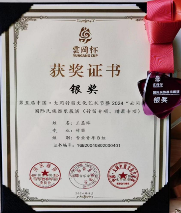 (2022级器乐表演班王圣烨参加云冈杯国际民族器乐展演)