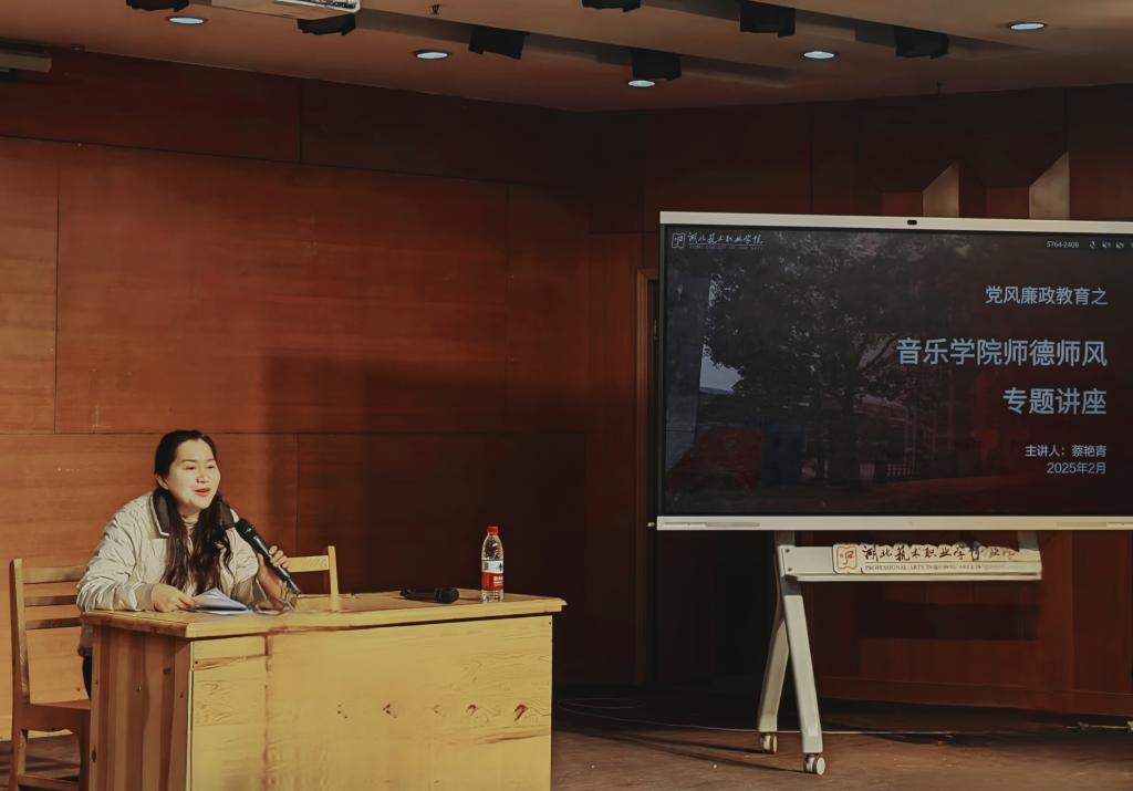 纪检书记蔡书记为音乐学院全体教师开展了党风廉政教育——师德师风专题活动,会上蔡书记从“坚定政治方向、自觉爱国守法、传播优秀文化、潜心教书育人、关心爱护学生、坚持言行雅正、遵守学术规范、秉持公平诚信、坚守廉洁自律、积极奉献社会”等十个方面,深入浅出地解读了《新时代高校教师职业行为十项准则》,要求全体教师时刻牢记职业道德规范,树立良好师德形象,成为有理想信念、有道德情操、有扎实学识、有仁爱之心的好老师。