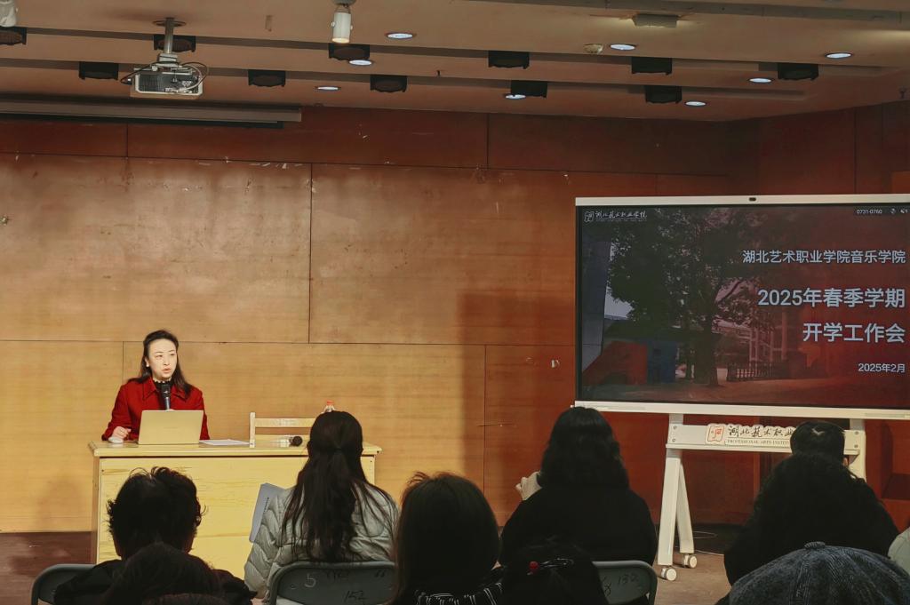2月20日上午,为明确新学期的工作目标,凝聚全体教职工力量,音乐学院隆重召开了2025年春季新学期开学工作会。湖北艺术职业学院党委委员、纪委书记蔡艳青,音乐学院党总支书记郑伏荣,院长聂琪以及全体教师参加会议。会议由郑伏荣书记主持。