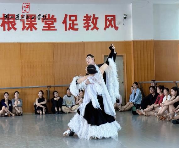 以高标准的专业素养和炽热激情,谱写体育与美育交融的激昂华章。近年来,湖北艺术职业学院通过校企合作共建产业学院方式,持续强化国际标准舞专业建设,打造雄厚的师资团队,大力培养从事国标舞表演、群众文化活动服务、艺术辅导与社会培训等工作的高素质技术技能人才,教育教学成果不断,师生先后在全国第六届国标舞锦标赛、中国大学生体育舞蹈(国标舞)锦标赛、全省第十三届大学生运动会体育舞蹈比赛、全省高校大学交谊舞锦标赛等重大赛事上斩获多项大奖。