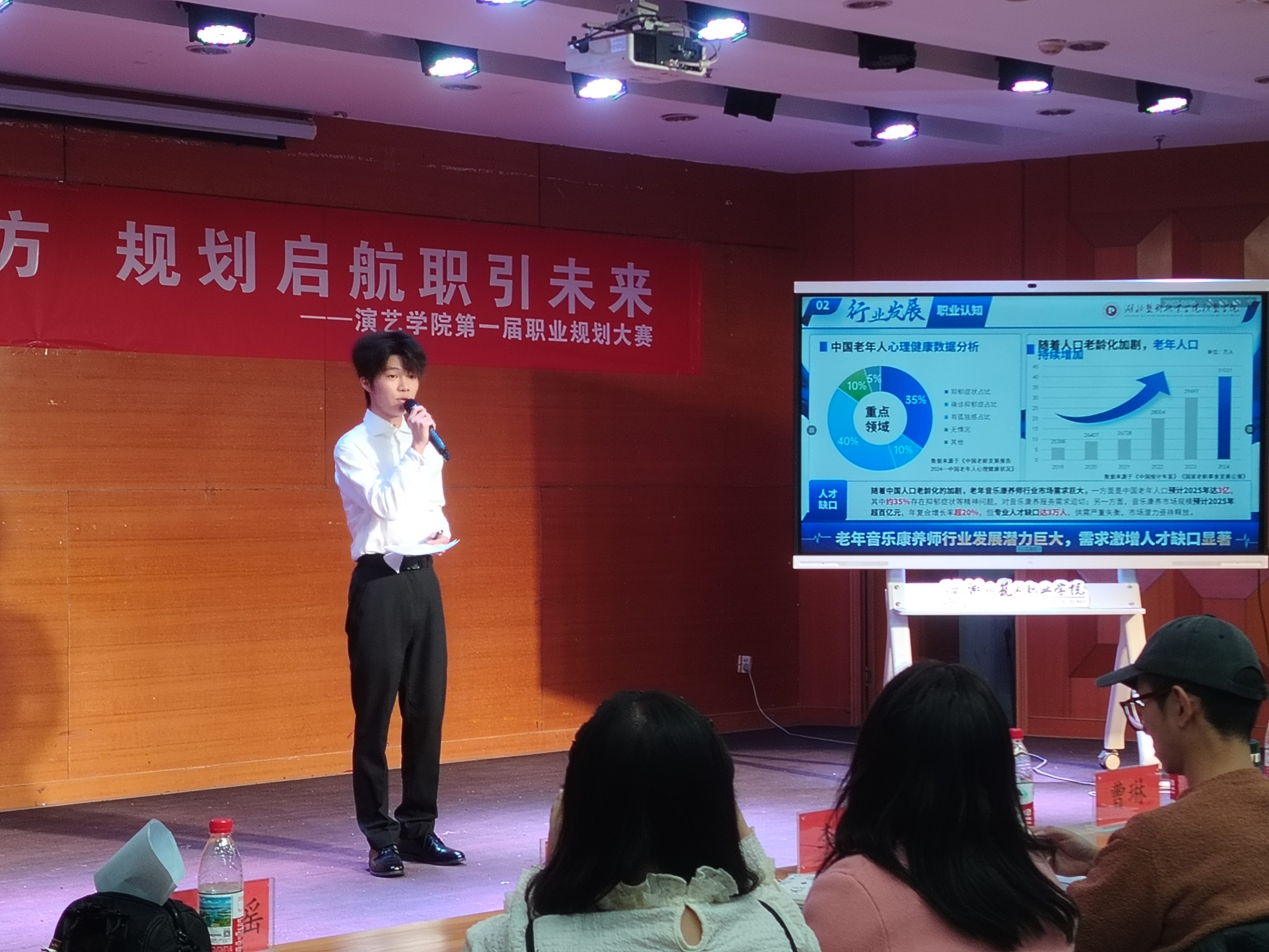 比赛中,选手们立足专业所长,将个人发展与行业趋势、国家战略紧密结合,精准对接市场需求,通过职业能力分析、求职路径规划、岗位适配展示等环节,展现了扎实的专业素养、良好的职业心态,以及扎根基层、服务国家的理想信念。答辩环节中,选手们从容应对评委关于职业风险预判、发展路径优化等问题的提问,展现出清晰的逻辑思维与灵活的应变能力,赢得评委认可。