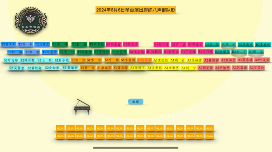经过两周艰苦而认真的训练,2024年6月6日,在声乐教研室徐丽娅和“青鸟”合唱团指挥周之蔚老师、艺术指导王晓韵老师的带领下,同学们意气风发,精神饱满地站在了琴台音乐厅的舞台上。