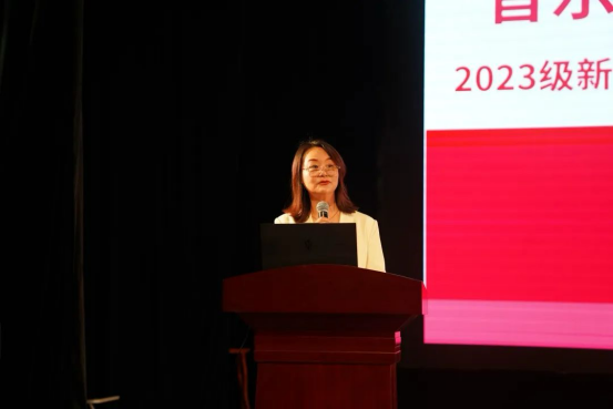 2023级钢琴班新生王展鹏、器乐表演班新生李佳珊上台发言,他们表示,“路虽远,行则将至;事难成,做则必成”,青年学生当坚定理想信念,做好大学规划,练就过硬本领,在湖艺遇见更好的自己,让增长本领成为青春搏击的能量。